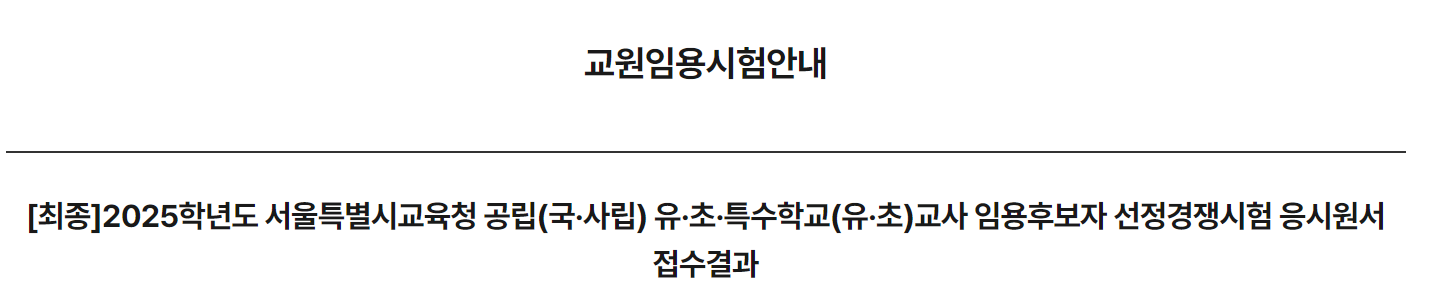 2025학년도 서울시 교육청 공립 유 초등 특수교사 임용시험 응시원서 접수는 9월 30일부터 10월4일까지 진행이 되었습니다.