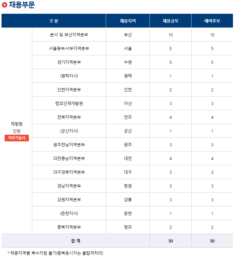 본사 및 부산지역본부 10명, 서울 동부 서부 지역본부 5명, 경기지역본부 5명 등 50명을 선발할 예정입니다.